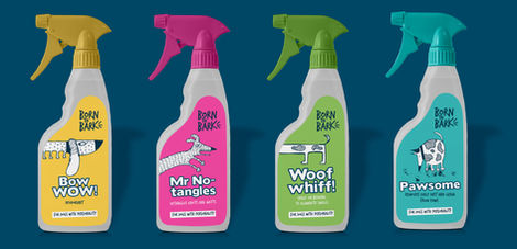 Logo and visual branding for the launch of a dog grooming product range. The brief was to create a fun brand that engages with the emotional side of dog ownership.